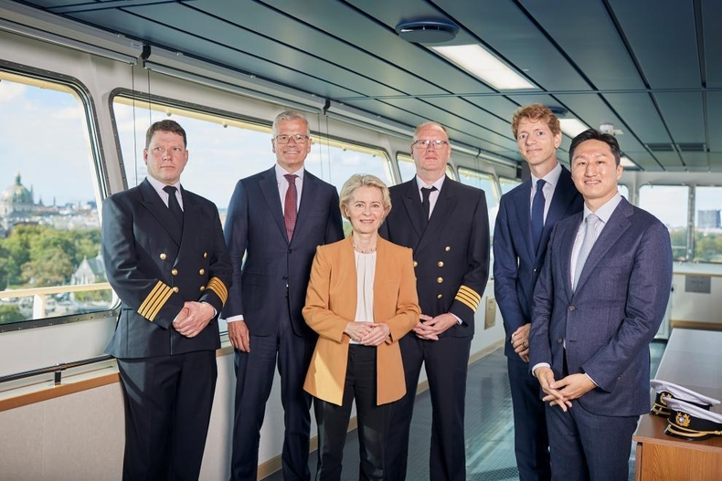 HD현대는 정기선 사장이 최근 덴마크 코펜하겐에서 열린 2,100TEU급 메탄올 추진 컨테이너 운반선 ‘로라 머스크(Laura Maersk)호’의 명명식에 참석했다고 17일(일) 밝혔다.