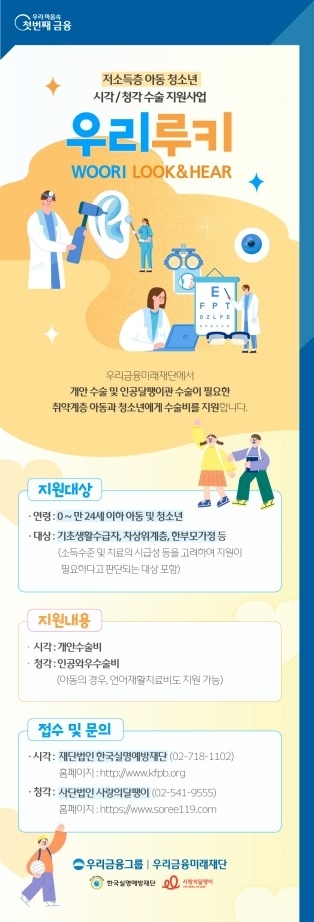 임종룡 우리금융그룹 회장은 “우리 주변에는 시각·청각 장애로 문화생활은 물론이고 기본적인 생활조차 어려운 어린아이들이 많다”며, “이 아이들이 눈부신 세상을 만나고 세상의 아름다운 울림을 느낄 수 있도록 빛과 소리를 선물하는 우리 루키(Look & Hear) 프로젝트를 시작하려 한다”고 밝혔다.