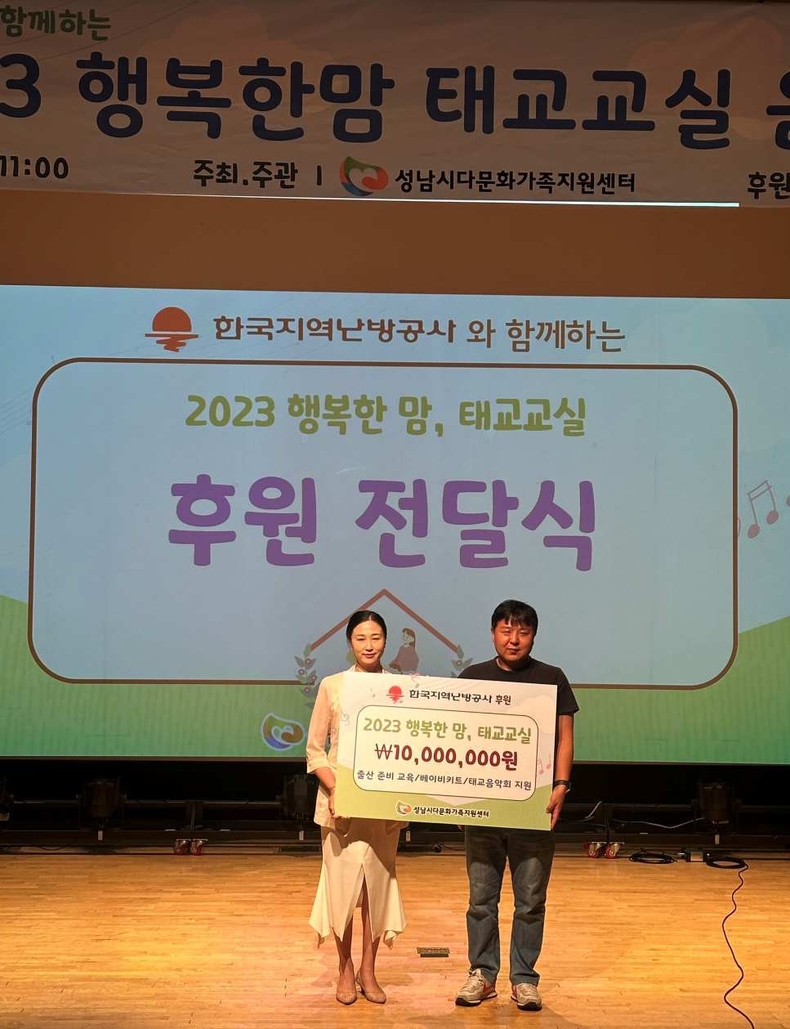 [ 타임즈 - 김시창 기자 ] 한국지역난방공사(사장 정용기, 이하 ‘한난’)의 자발적 봉사단체인 ‘본사 행복나눔단’은 16일(토) 성남시 다문화가족 지원센터에 출산 예정 다문화 가정의 출산·육아 교육과 용품 지원을 위한 ‘행복한맘 태교교실’ 운영비용 1,000만원을 전달했다.