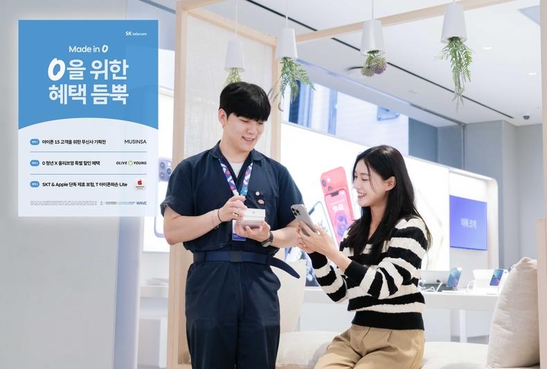 SKT는 2030 1위 패션 플랫폼 ‘무신사’와 함께 ‘0 청년 기획전’을 열고 무신사 채널에서 SKT iPhone 15를 개통하는 고객 대상으로 할인권 및 최대 30만 원 상당의 무신사 기획전 아이템을 제공하는 프로모션을 진행한다.