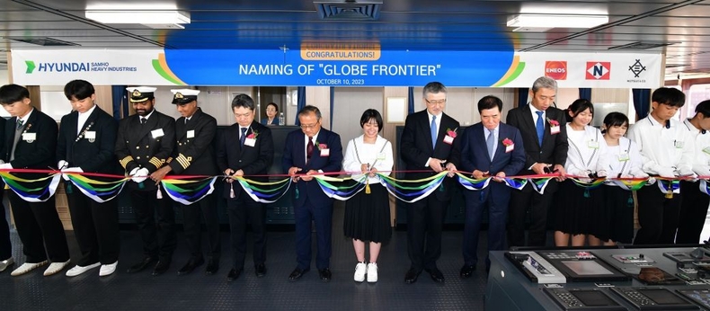 ▲명명 ▲샴페인 브레이킹 ▲테이프 컷팅 ▲뱃고동 시연 ▲선상 투어 순으로 진행된 이날 행사에서 해당 선박은 ‘글로브 프론티어(GLOBE FRONTIER)호’로 명명됐다. 이 선박은 길이 223m, 너비 32m, 깊이 23m의 제원으로, LPG 이중연료 추진방식을 통한 오염물질 저감 능력이 특징이다.