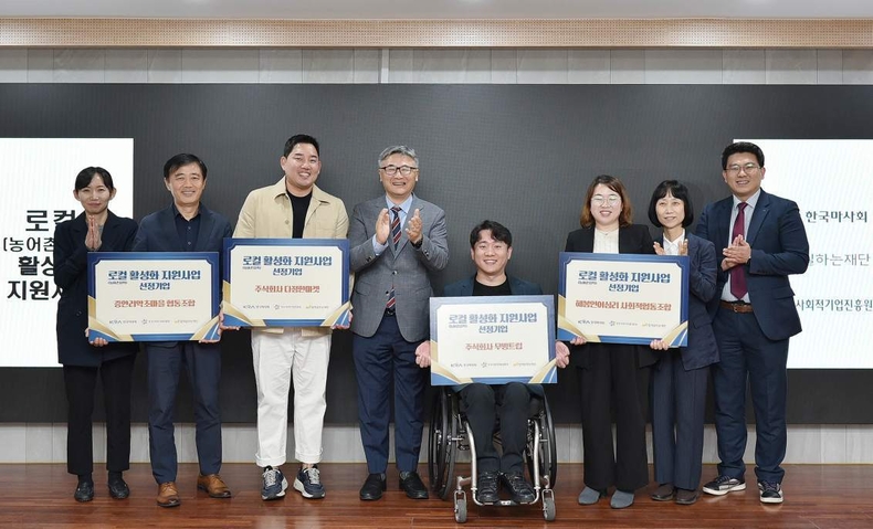 [ 타임즈 - 김시창 기자 ] 한국마사회(회장 정기환)와 함께일하는재단(이사장 이세중), 한국사회적기업진흥원(원장 정현곤)이 함께 추진한 “2023년도 로컬(농어촌지역) 활성화 지원사업”(이하 지원사업)에 선정된 4개 기업에 프로젝트 사업비를 전달하는 기금전달식이 19일 오후 함께일하는재단 교육장에서 개최됐다.
