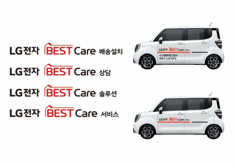 LG전자는 새로운 서비스 브랜드 확산을 위해 최근 서비스 차량 2천 대에 브랜드 랩핑을 새로 했다. ▲배송 차량 ▲유니폼 ▲명함 ▲명찰 등에도 신속히 적용해 고객에게 통합 서비스 브랜드를 알릴 계획이다.