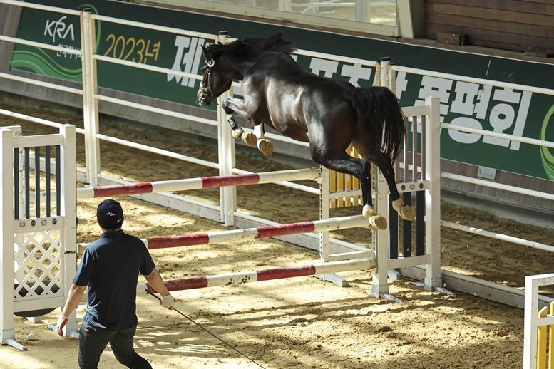 스포츠말 품평회에 참가하기 위해 제주와 내륙에서 41두의 2, 3세 어린 승용마들이 배와 차에 몸을 싣 고 서귀포로 몰려들었다. 뛰어난 승용마로 성장할 가능성을 옅보기 위해 전문 심사단들은 날카로운 눈 으로 체형과 보행을 평가했다. 사람의 기승 없이 말 스스로 장애물을 뛰어넘는 ‘프리점핑’ 부문에서 승용 마들은 그간 훈련해온 비월 능력을 과시했다. 특히 2세마 ‘모래시계’는 프리점핑에서 뛰어난 기량을 선 보이며 전체 참가마를 통틀어 가장 높은 점수를 획득했다. 이번 품평회의 심사위원이자 프랑스 승용마 품평관 자격을 소유한 정현아 교수(제주한라대학교 마사학과)는 “십여년 전만 해도 국산 승용마의 품질 은 외국에 비해 현저히 떨어졌지만 수년간 대회가 이어질수록 국산 승용마들의 품질이 눈에 띄게 좋아 지는걸 느낀다. 확실히 국내 말산업이 빠르게 발전하고 있다는게 느껴지며 앞으로의 성장이 기대된다”고 소감을 전했다.