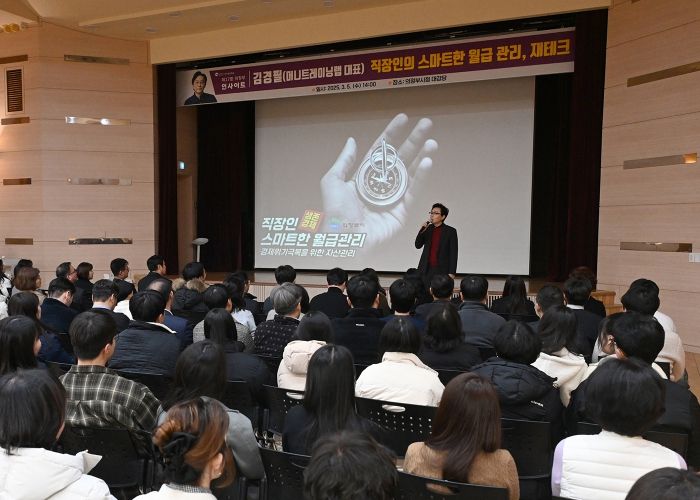 머니트레이닝랩 김경필 대표가 ‘직장인의 스마트한 월급 관리, 재테크’라는 주제로, 월급 관리의 중요성과 효과적인 재테크 전략을 설명했다. 흥미로운 사례를 활용한 유쾌한 강연 스타일로 실용적인 재정 관리 방법을 제시해 큰 호응을 얻었다.