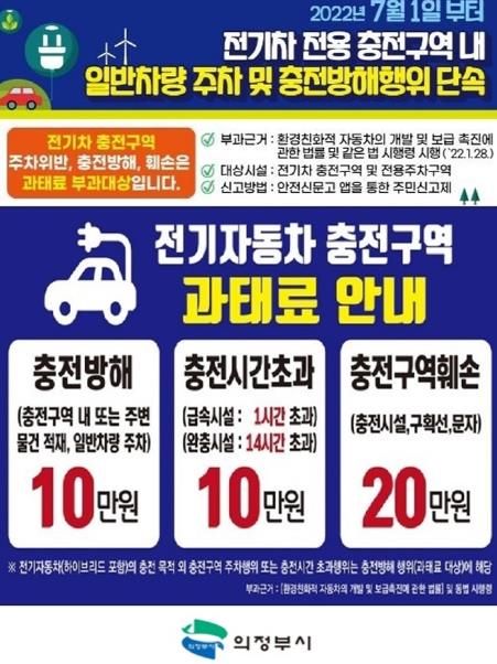 [ 타임즈 - 김시창 기자 ] 의정부시는 환경친화적 자동차 전용주차(충전)구역에 대한 주정차 위반 단속을 시행하고 있다.