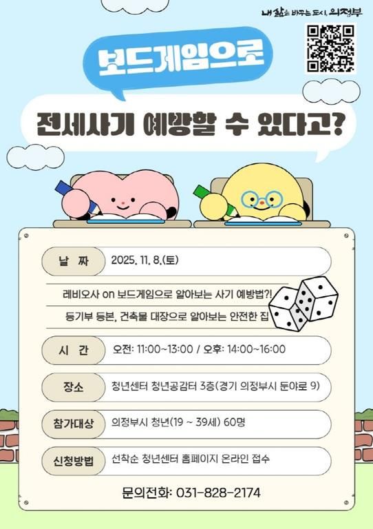 [ 타임즈 - 김시창 기자 ] 의정부시는 11월 8일 운영 예정인 전세사기 피해 예방 교육용 보드게임 프로그램 ‘레비오사 보드ON’에 참여할 청년을 모집한다.