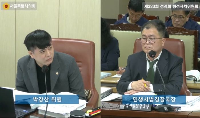 [ 타임즈 - 김시창 기자 ] 서울시의회 박강산 의원(더불어민주당 비례대표)은 7일 서울시 민생사법경찰국 대상으로 한 2025년도 행정자치위원회 행정사무감사에서 성과지표가 시민의 체감에 동떨어진 지표로 운영되고 있다며 전면적인 개선을 촉구했다.
