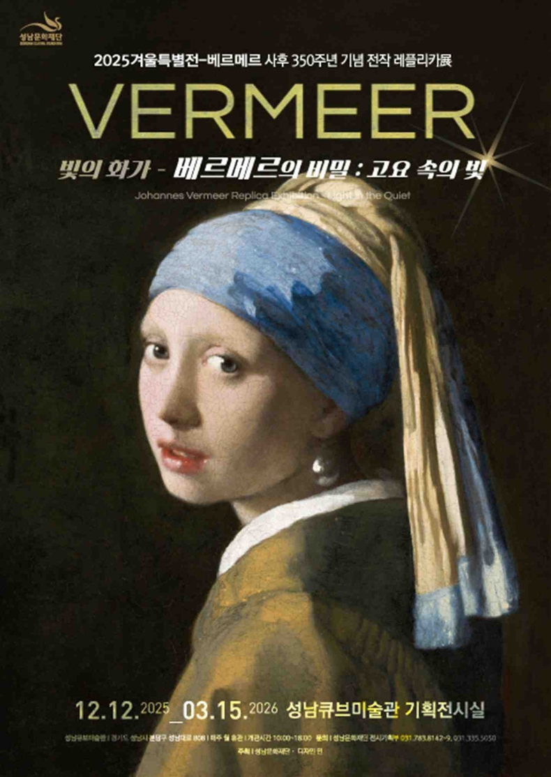 [ 타임즈 - 김시창 기자 ] 성남문화재단(대표이사 윤정국)은 네덜란드를 대표하는 거장 요하네스 베르메르의 예술세계를 조망하는 겨울 특별기획전 ‘베르메르의 비밀: 고요 속의 빛’ 레플리카 전시를 12일(금)부터 내년 3월 15일(일)까지 성남큐브미술관 기획전시실에서 개최한다.