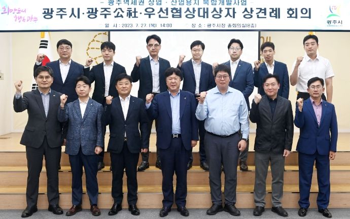 [ 타임즈 - 김시창 기자 ] 광주시가 역점사업으로 추진 중인 ‘광주역세권 도시개발구역 상업·산업용지 복합개발사업’의 관련 당사자인 광주시·광주도시관리공사·우선협상대상자(한국토지신탁 컨소시엄)가 27일 사업추진을 앞두고 광주시청에서 상견례회의를 개최했다.
