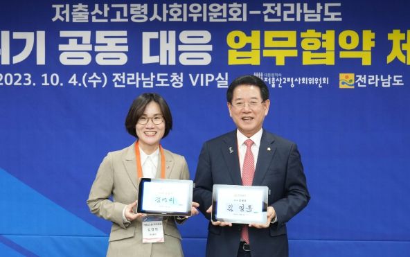 [ 타임즈 - 김시창 기자 ] 전라남도는 4일 도청 접견실에서 대통령직속 저출산고령사회위원회와 유기적 협력을 통해 지역 실정에 맞는 저출산·고령화 시책을 마련해 추진하기 위한 업무협약을 했다.