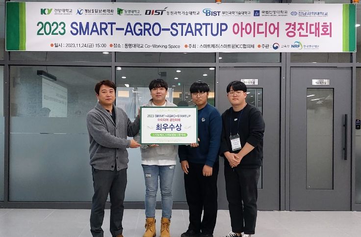 ‘2023 스마트-아그로-스타트업 아이디어 경진대회’는 대학 LINC3.0사업의 특화분야 ICC(기업협업센터) 창업 아이템 발굴 및 창업 성과 창출을 위해 교육부와 한국연구재단이 후원하고 건양대·경남도립남해대·동명대·동원과학기술대·부산과학기술대·안동대·전남과학대 7개 대학협의회가 공동주최한 행사다.