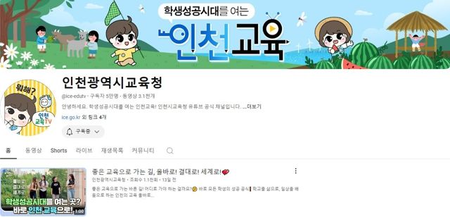 2019년 개설된 인천시교육청 유튜브 채널은 꾸준히 성장해 2022년 11월 구독자 3만 명, 2023년 10월 4만 명을 넘어섰으며, 최근 5만 명을 돌파하는 성과를 거뒀다.