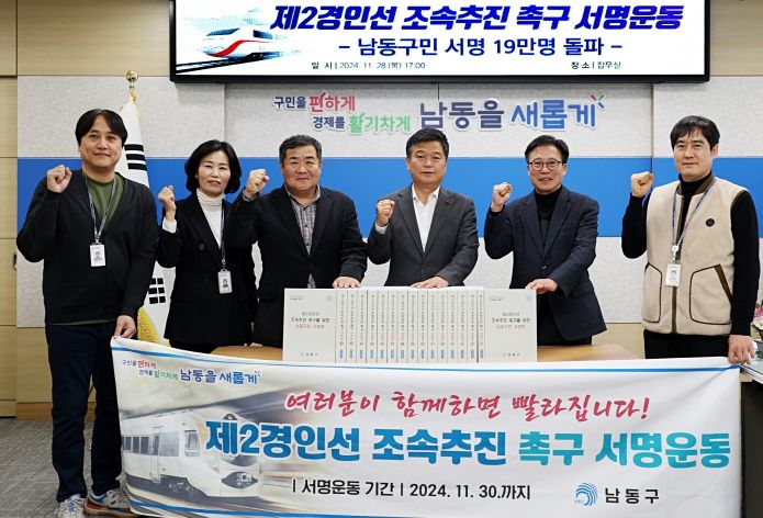 박종효 남동구청장은 “이번 서명운동은 제2경인선의 조속한 사업추진을 원하는 남동구민의 간절한 마음의 표현으로, 중앙부처에 구민의 염원을 전달해 제2경인선의 조속 추진을 강력히 촉구할 것”이라고 전했다.