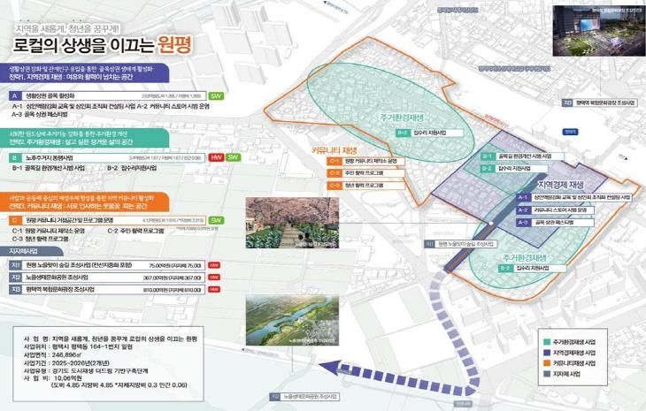 2024년 경기 더드림 재생사업에 선정된 평택시 원평동은 ▲생활상권 골목 활성화 ▲노후 주거지 환경개선 및 집수리 지원 ▲원평 커뮤니티 제작소 거점공간 및 주민‧청년 활력 프로그램 운영 등 실행계획에 따라 다양한 사업을 추진할 예정이다.