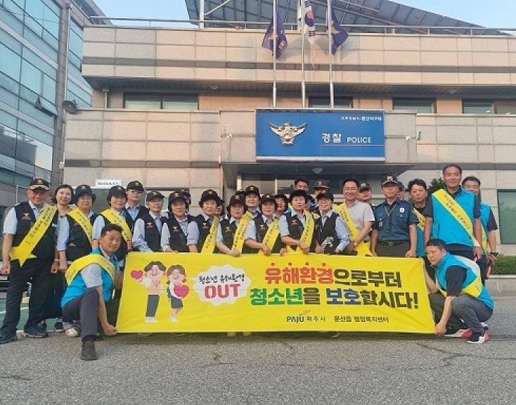 ‘온 마을에서 키우는 아이들’이라는 표어 아래 진행된 이번 활동에는 문산읍 실버경찰대, 문산읍 청소년지도위원회, 문산지구대, 문산읍 행정복지센터 직원 등 총 35명이 참여했다.