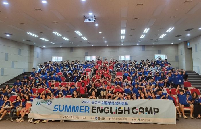 [ 타임즈 - 김시창 기자 ] 음성군은 지난 11일부터 15일까지 4박 5일간 관내 초·중학생 140명을 대상으로 강원도 원주시 상지대학교에서 ‘2025년 여름방학 영어캠프’를 실시하고 수료식을 가졌다고 밝혔다.