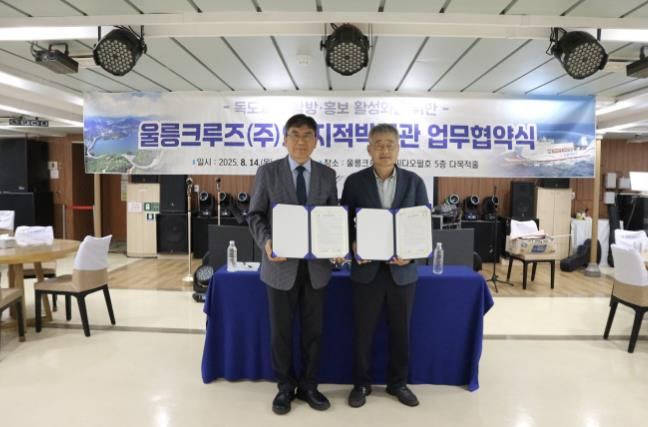 [ 타임즈 - 김시창 기자 ] 지적박물관은 지난 14일 포항영일만항 울릉크루즈 뉴씨다호펄호 5층 다목적홀에서 대한민국 광복 80주년 기념으로 울릉크루즈(주)와 업무협약을 체결했다. 양 기관은 이 협약식을 통해 앞으로 독도 영토주권을 강화하기 위한 독도 교육・탐방・홍보 등 다방면의 활동에 있어 호혜적인 협력관계를 긴밀히 하기로 했다. 첫째, 대국민 독도사랑 의식을 제고하기 위해 독도교육・탐방・홍보 등에 상호 협력한다. 둘째, 울릉크루즈(주)는 지적박물관이 매년 실시하는 전국 초중고 학생 독도퍼즐왕선발대회, 독도퀴즈왕선발대회, 독도교육 우수교사 선발대회 등 입상자 15명에 대한 부상으로 독도탐방을 위한 크루즈호 왕복 승선권을 제공한다. 셋째, 지적박물관은 울릉크루즈(주)의 홍보기관으로서 행사포스터, 현수막, 도록, 리플렛 등을 통해 홍보한다. 넷째, 기타 독도 영토주권을 강화하는 각종 활동을 상호 합의 아래 긴밀히 협력한다.