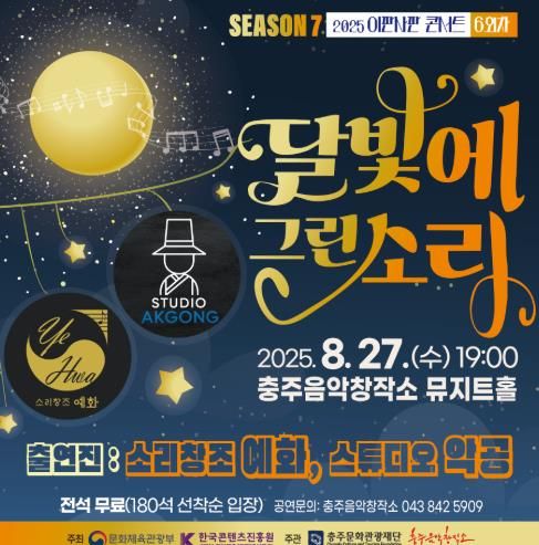 [ 타임즈 - 김시창 기자 ] 충주음악창작소는 오는 8월 27일 오후 7시, 창작소 내 뮤지트 홀에서 ‘2025 음악창작소 프로그램 운영지원 사업’의 일환으로 이판사판 콘서트 시즌7의 여섯 번째 공연인 '달빛에 그린 소리'를 선보인다.