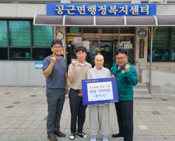 [ 타임즈 - 김시창 기자 ] 횡성군 공근면 봉덕사(주지 일광스님)는 19일 추석 명절을 앞두고 관내 저소득층을 돕기 위해 성금 100만 원을 공근면행정복지센터에 기탁했다.