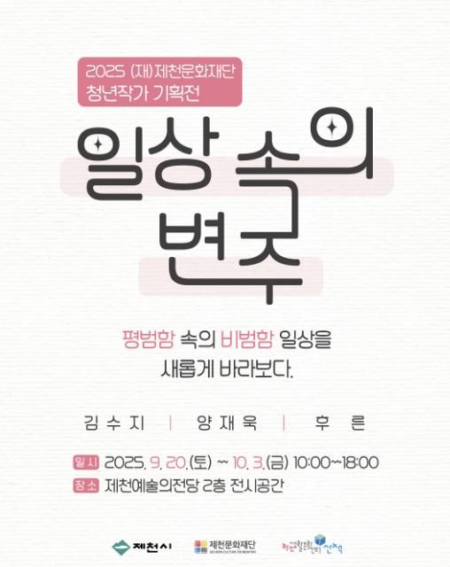 재단은 지난 9월 5일 공정한 심사를 통해 3명의 청년 작가를 선정했으며, 이번 기획전을 통해 제천 지역 청년 예술가들의 성장을 적극 지원하고 지역 문화예술의 활성화와 지속 가능한 발전을 도모할 계획이다.