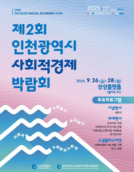 [ 타임즈 - 김시창 기자 ] 인천광역시는 오는 9월 26일부터 28일까지 3일간, 인천 중구 상상플랫폼 웨이브홀에서 ‘제2회 인천광역시 사회적경제박람회’를 개최한다고 밝혔다.