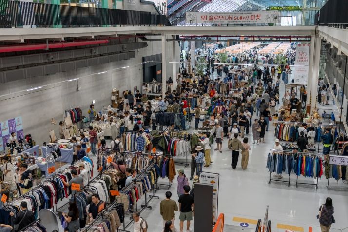라운지 공간에서는 국내 최대 규모의 빈티지 마켓인‘오 ! 슬로우 마켓’이 열려 총 80개 팀이 희소성 있는 아이템과 수공예품을 선보였다. MZ세대를 중심으로 셀러와 소비자가 직접 소통하며 빈티지 시장의 저변을 확대하고 새로운 트렌드를 공유하는 장이 됐다.