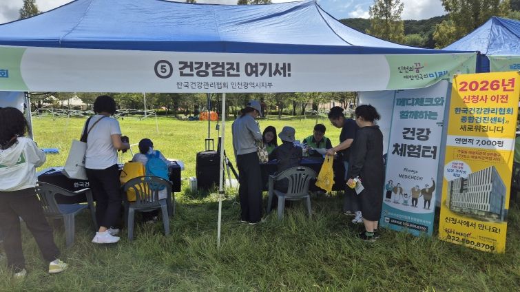건협 인천은 행사장을 찾은 시민들을 대상으로 ▲뇌파맥파스트레스 ▲빈혈수치측정 등 다양한 건강체험서비스를 제공했으며, 2026 신청사 이전 홍보안내와 기념품 배부를 통해 참여자들의 관심을 이끌어내었다.