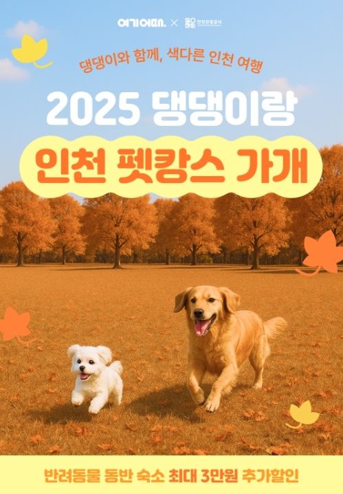 [ 타임즈 - 김시창 기자 ] 인천관광공사는 반려동물 동반 여행 활성화를 위해 대한민국 대표 종합 여행·여가 플랫폼 “여기어때”와 함께 '2025 댕댕이랑 인천 펫캉스 가개' 온라인 숙박 할인 기획전을 9월 24일부터 11월 30일까지 개최한다고 밝혔다. 이번 기획전은 반려동물과 함께하는 여행 수요가 꾸준히 증가하는 가운데, 인천을 대표적인 반려동물 친화 관광도시로 널리 알리기 위해 마련됐다.