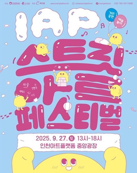 [ 타임즈 - 김시창 기자 ] (재)인천문화재단-인천아트플랫폼은 9월 27일 13:00~18:00 인천아트플랫폼 중앙광장에서 거리공연과 예술놀이 프로그램으로 구성된 거리예술 축제 'IAP 스트릿 아트 페스티벌'을 개최한다.