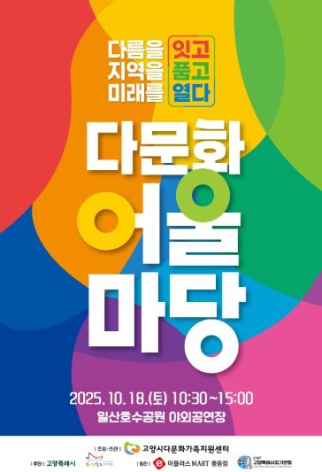 [ 타임즈 - 김시창 기자 ] 고양시다문화가족지원센터는 오는 10월 18일 오전 10시 30분, 일산호수공원 야외공연장에서 ‘2025 다문화 어울마당’을 개최한다고 밝혔다.