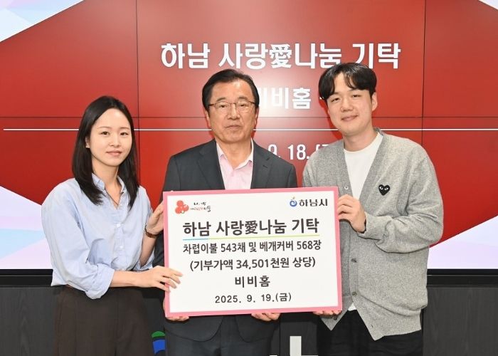 비비홈 문구희 대표는 “추석을 앞두고 하남시 어려운 이웃들을 위해 이불을 기탁할 수 있게 되어 감사한 마음이며, 따뜻한 이불이 됐으면 좋겠고 늘 건강하시길 바란다”고 기탁 소감을 밝혔다.
