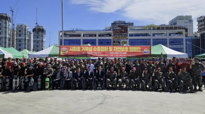 [ 타임즈 - 김시창 기자 ] 해병대시흥시전우회는 지난 9월 21일 거북섬마리나 일원에서 수중ㆍ수변 정화 활동과 자연보호 캠페인을 실시했다. 이번 행사에는 해병대시흥시전우회뿐만 아니라 경기도 각 시군 해병전우회 회원들과 시흥도시공사 직원들도 참여해 정화 활동을 지원했다.