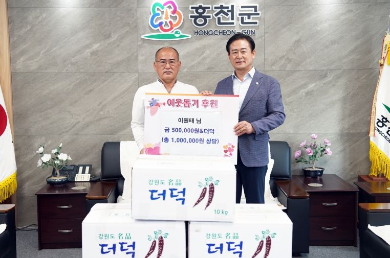 [ 타임즈 - 김시창 기자 ] 이원태 님은 9월 23일 홍천군청을 방문하여 추석을 맞아 어려운 이웃들이 따뜻한 명절을 보낼 수 있도록 성금 50만 원과 더덕(생) 3박스(50만원 상당) 등 총 100만원 상당의 성금과 성품 기탁했다.