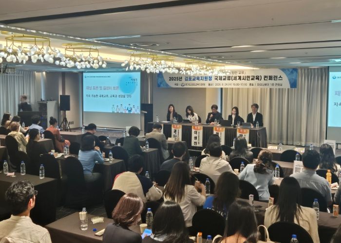 [ 타임즈 - 김시창 기자 ] 경기도김포교육지원청은 9월 24일, 김포 마리나베이에서 『2025 김포교육지원청 국제교류협력 콘퍼런스』를 성공적으로 개최했다고 밝혔다. 이번 행사는 국내외 학교 현장의 국제교류 성공 사례와 효과적인 운영 방안을 공유하여 교원들의 국제교류 역량을 강화하고, 교육공동체 간 지속 가능한 협력 기반을 마련하기 위해 추진됐다. 이날 행사에는 김포 관내 유·초·중·고등학교 교원 100여 명이 참석해 높은 관심을 보였다.