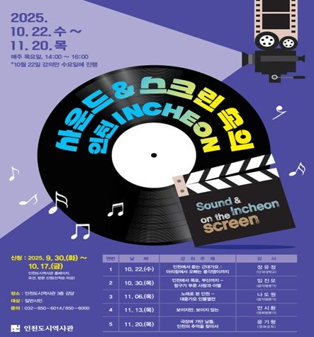 [ 타임즈 - 김시창 기자 ] 인천광역시 인천도시역사관은 오는 10월 22일부터 일반 시민을 대상으로 ‘도시학당-사운드&스크린 속의 인천’을 운영한다고 밝혔다.
