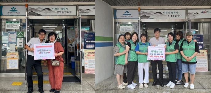 이어, 문학동 새마을부녀회(회장 우삼순)도 화재 피해를 겪은 외국인 다자녀가구에 50만 원을 기부했다.