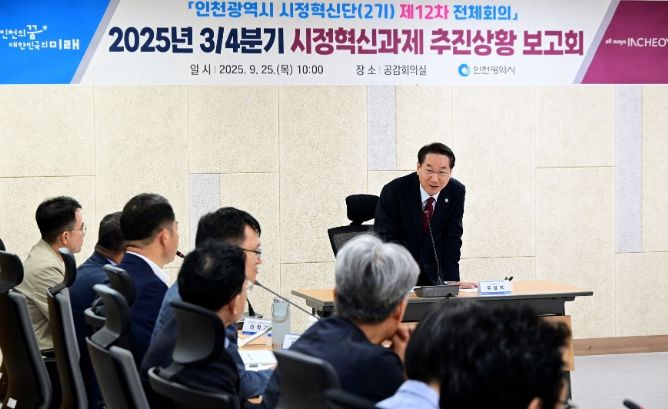 [ 타임즈 - 김시창 기자 ] 인천광역시는 9월 25일 시청 공감회의실에서 ‘2025년 3/4분기 시정혁신과제 추진상황 보고회’를 개최했다고 밝혔다.