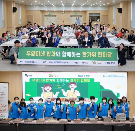[ 타임즈 - 김시창 기자 ] 하남시종합사회복지관은 24일 복지관 4층 대강당에서 ‘우양이네 밥차와 함께하는 한가위 한마당’을 개최했다. 우양재단과 본죽의 후원, ‘2층에 사진관’의 재능기부로 진행됐으며, 명절을 앞두고 사회적 고립이 우려되는 저소득 어르신 60명을 초청해 한가위 점심과 명절 선물, 장수사진 촬영 서비스를 제공했다.
