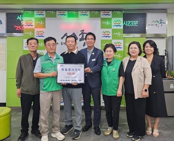[ 타임즈 - 김시창 기자 ] 양평군 서종면 새마을회는 26일, 사랑의 나눔을 실천하기 위해 헌혈증서 100매를 문호 1리 백상현 이장에게 기증했다.