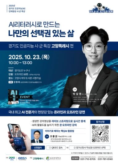 [ 타임즈 - 김시창 기자 ] 고양특례시는 경기도와 경기과학원이 주최하는 ‘2025년 인공지능 시군특강(고양특례시편)’을 10월 23일 마두도서관에서 진행한다고 밝혔다.