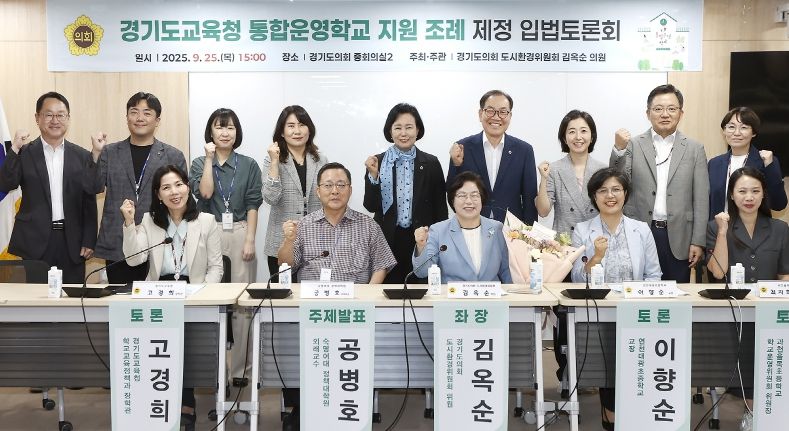 [ 타임즈 - 김시창 기자 ] 경기도의회 도시환경위원회 김옥순 의원(더불어민주당, 비례)은 25일 경기도의회 중회의실에서 ‘경기도교육청 통합운영학교 지원 조례’ 제정 입법토론회를 개최했다.