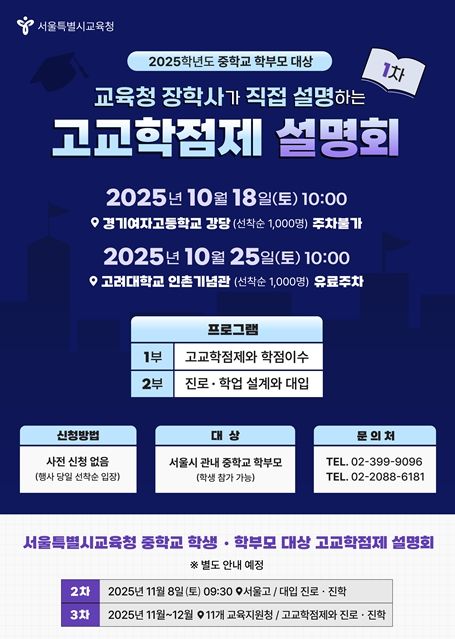 10월에는 경기여고(10월 18일)와 고려대학교 인촌기념관(10월 25일)에서 각각 선착순 1,000명을 대상으로 2차례 설명회를 개최한다.