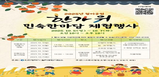 김영미 시 월미공원사업소장은 “추석 연휴를 맞아 가족과 함께 즐길 수 있는 다양한 체험을 통해 전통문화를 계승하고, 외국인 관광객에게도 한국 명절문화를 알릴 수 있는 뜻깊은 자리가 될 것”이라며 “앞으로도 월미공원이 시민들의 문화 쉼터로 자리매김할 수 있도록 다채로운 프로그램을 마련하겠다”고 말했다.
