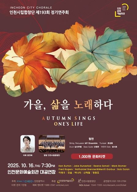 [ 타임즈 - 김시창 기자 ] 인천시립합창단(예술감독 윤의중)은 오는 10월 16일 오후 7시 30분, 인천문화예술회관 대공연장에서 깊어지는 가을의 정취와 함께 삶의 울림과 희망을 담은 무대를 선보인다.