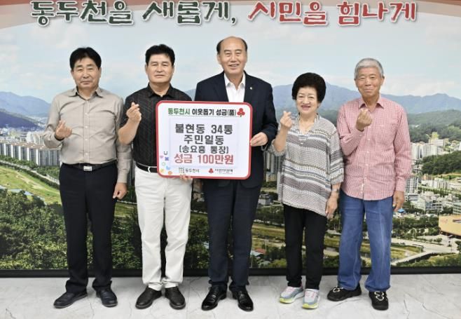 박형덕 동두천시장은 “지역사회에 귀감이 되는 따뜻한 나눔을 실천해 주신 불현동 34통 주민들과 송요흥 통장님께 감사드린다”라며 “기탁된 성금은 도움이 꼭 필요한 가정에 소중히 전달하겠다”라고 밝혔다.