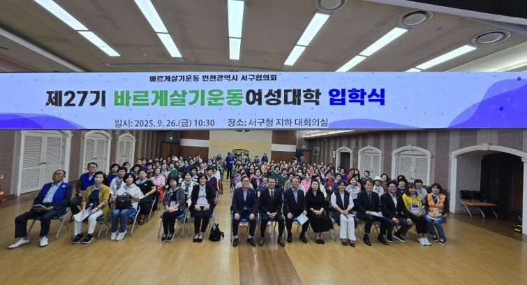 [ 타임즈 - 김시창 기자 ] 바르게살기운동 인천 서구협의회는 9월 27일 서구청 대회의실에서 ‘제27기 바르게살기운동 서구여성대학 입학식’을 개최했다.