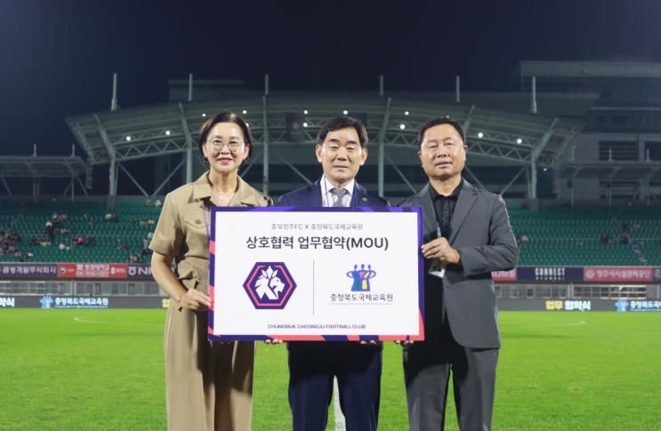 [ 타임즈 - 김시창 기자 ] 충청북도교육청 직속기관인 국제교육원은 지난 27일 저녁, 청주종합운동장에서 충북청주프로축구단과 이주배경 학생들의 스포츠 문화체험 확대 및 협력 활성화를 위한 업무협약을 체결했다고 밝혔다.