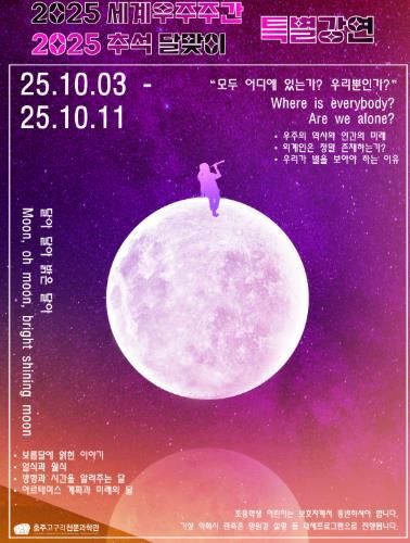[ 타임즈 - 김시창 기자 ] 충주고구려천문과학관에서는 세계우주주간과 추석 한가위 연휴를 맞아 10월 3일부터 11일까지 특별 강연과 달맞이 관측 행사를 진행한다.