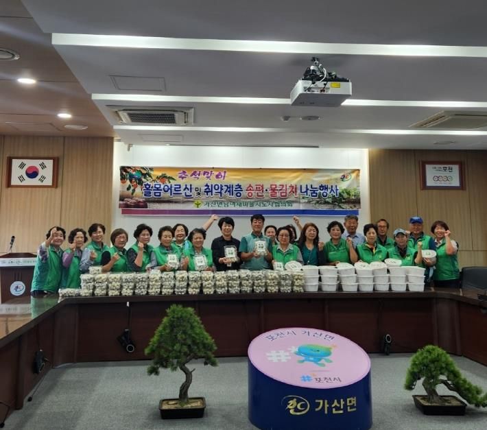 [ 타임즈 - 김시창 기자 ] 가산면 남녀새마을지도자협의회는 지난 29일 가산면행정복지센터에서 추석을 맞아 1인가구 어르신과 취약계층을 위한 송편·물김치 나눔 봉사와 월례회의를 개최했다.